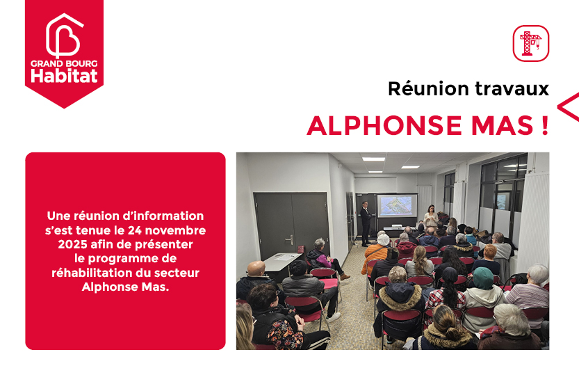 Une réunion d’information s’est tenue le 24 novembre 2025 afin de présenter le programme de réhabilitation du secteur Alphonse Mas. Au total, 35 participants étaient présents pour découvrir le calendrier opérationnel, l’organisation du c...